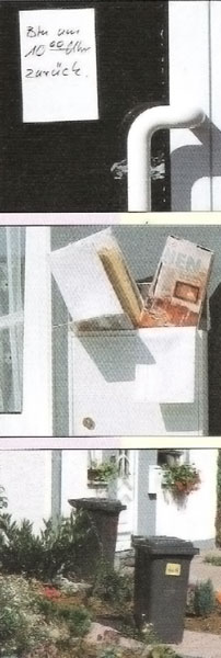 Když musíte pravidelně na několik dní opouštět domov, měli byste bezpodmínečně poprosit souseda, aby vám v případě potřeby vybíral poštovní schránku nebo vrátil na místo vyprázdněnou popelnici. Při dlouhodobější nepřítomnosti – například o dovolené – by měla váš byt nebo dům kontrolovat osoba, které důvěřujete.
