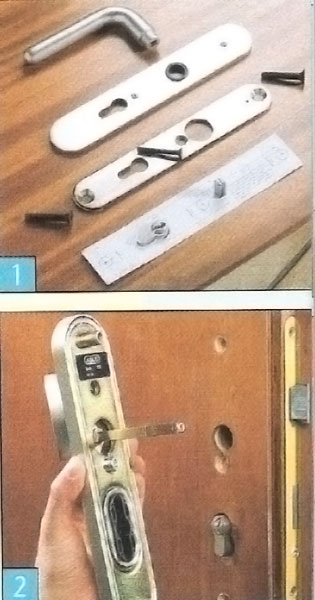 Ani nejlepší zámková vložka nepomůže, když se nezkombinuje s dveřním štítkovým kováním, které se nedá odšroubovat ani neumožňuje povytáhnout vložku tak, aby se dala rozlomit. Proto byste měli na dveře namontovat ochranný kryt zámku z tvrzené ocele, zevnitř přichycený třemi šrouby.